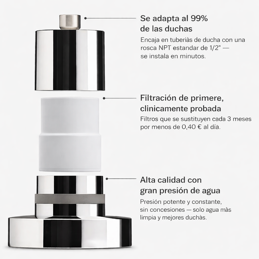 Mi ducha ahora se siente como un auténtico spa y mi piel y mi cabello han mejorado drásticamente.